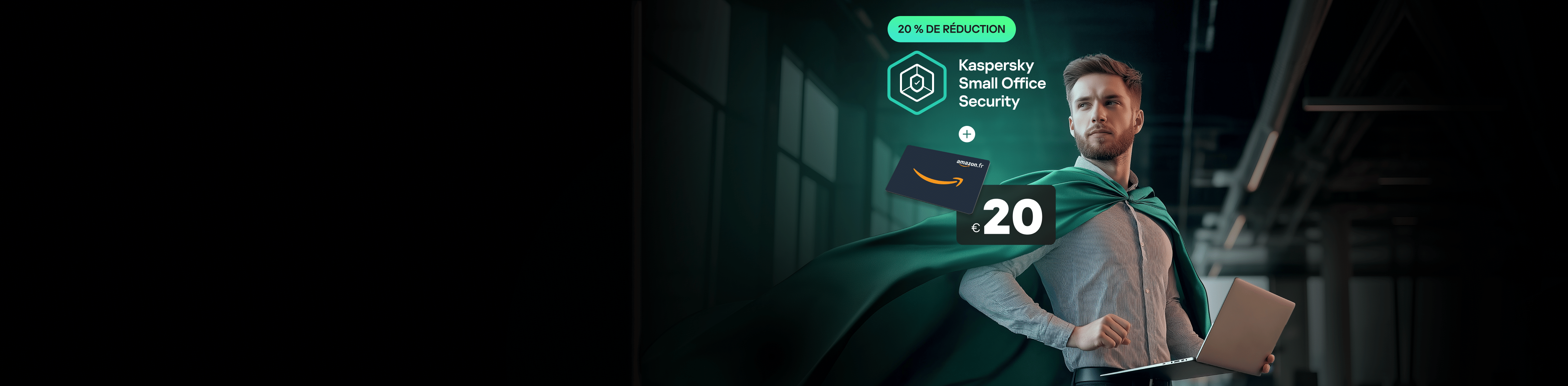 Préservez votre entreprise des ransomwares et des cybermenaces grâce à nos suites de cybersécurité dédiées.  Offre à durée limitée : pour l'achat de Kaspersky Small Office Security, bénéficiez d'une remise de 20 % + une Carte cadeau Amazon.fr* d'une valeur de 20 € !